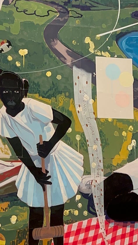 I took my sweet time. It allowed me to question myself, understand deeper and fully appreciate what was placed in front of me. Marshall wanted us to grasp the true meaning of what it is to be Black.. Every painting carried its own Beginning, Middle, and End. He gave the work the power to dictate how our narratives are seen, felt, and valued. In 10, 15, even 20 years, the story of his work will still stand, untouched by time.